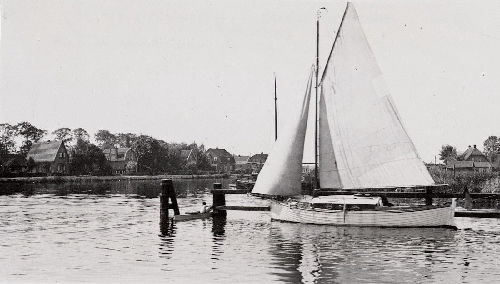 Waar het Jaagpad eindigt bij de Ringvaart. Midden rechts het huis van de fortwachter, waarachter de lindeboom zal hebben gestaan. Links van de zeilboot is nog net het pontje over de Ringvaart van Piet Eilander zichtbaar. Foto: J.van Eck;