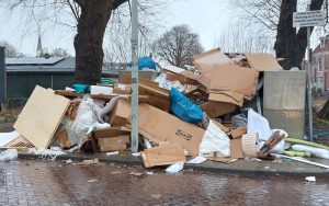 Sommigen laten hun grofvuil en vooral veel dozen, die hier niet thuishoren, achter in de betonnen bunker die de gemeente heeft geplaatst.