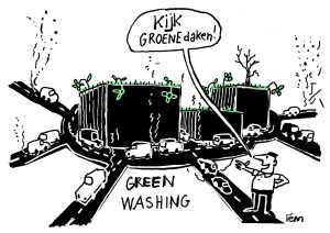De grote loodsen in de Lutkemeerpolder staan voor het overgrote deel nog ongebruikt leeg. Maar zelfs nú lukt het na 16 uur al niet om van het bedrijventerrein af te komen. Cartoon: Femke van Heerikhuizen.