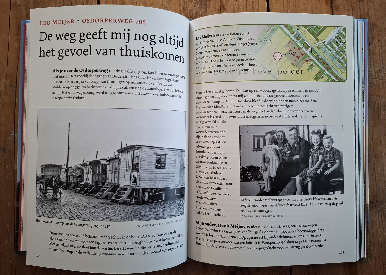 Op zijn minst bijzonder zijn de twintig pagina’s waarin Leo Meijer over het dagelijkse leven op het woonwagenkamp De Rolleman op Osdorperweg 705 vertelt. Over hoe gezinnen met zeven kinderen in kleine woonwagens op 14 vierkante meter woonden. Het is in dit licht niet vreemd dat het leven zich hier vooral buiten afspeelde. Met z’n allen tegelijk eten was er niet bij en “het was een legpuzzel om iedereen een slaapplek te kunnen geven”. Meijer vertelt ook over de oorlogstijd, de rol van de politie, de zeer karige voorzieningen die de gemeente beschikbaar stelde, het werkbezoek van burgemeester Samkalden aan het kamp, het schooltje, de kermis, de kerk en de saamhorigheid binnen deze kleine samenleving.